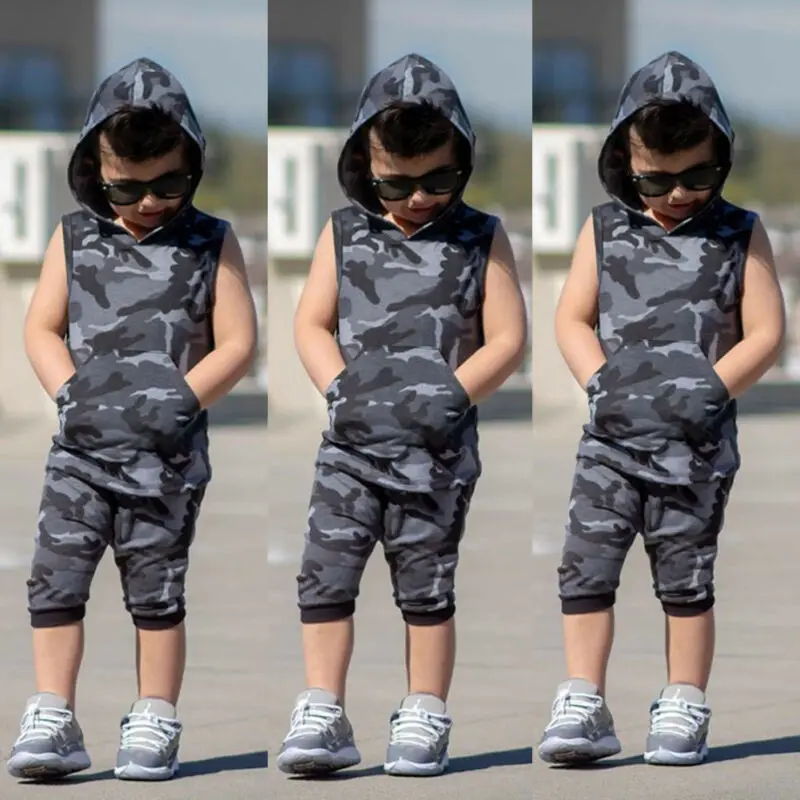 Good Price of 1-6T 2019 Baby Boys Summer Clothing Newborn Kids Baby Boys Camouflage Hoodie Tops Vest Shorts Botto